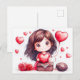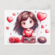 Cartoon Girl Holding Heart Romantic Valentine’s Da Postcard