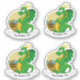 Set of four cut vinyl stickers with an illustration of a cute green dragon guarding a treasure; fantasy animal cartoon motives for kids; with custom text template for your child's name or custom message