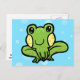 featuring and adorable digital illustration of a little smiling green cartoon frog with yellow cheeks covered in speckles.
