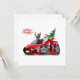 Cartoon greeting Christmas card with cool Santa on supercar