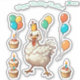 illustration of a cute hen celebrating a birthday.