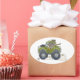 Cartoon illustration of a Elephant driving a jeep. Oval Sticker