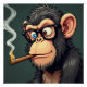 Cartoon illustration of a funny monkey smoking and wearing black glasses