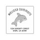 Cartoon illustration of a cute grey skin dolphin with white underbelly. Customise with your own address.