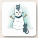 Cartoon Kittens Making a Christmas Snow Cat Coaster