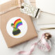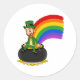 Cartoon leprechaun sitting on a pot of gold classic round sticker