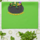 Cartoon leprechaun sitting on a pot of gold tea towel