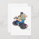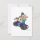 This design is a cartoon man on a motorcycle. The man is riding off looking behind him. He has a red love heart tattoo on his arm. This cartoon man on a motorcycle design looks great on this Invitations