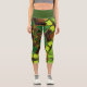 Cartoon Mandala Flower Green Yellow and Orange Capri Leggings