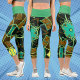 Cartoon Mandala Green Black and Yellow Capri Leggings