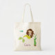 Cute girl's reusable Halloween candy Treat Bag, with graphics of a cute brunette mermaid, with a green tail. Purple coloured text can be personalise to read what you want. The perfect Halloween trick or treat bag for your little trick or treater.