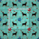 Cute cartoon style Miniature Pinscher with a scattering of bones and paw tracks. This design is intended to tile seamlessly.