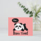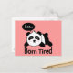 Cute cartoon panda sleeping on its belly with the funny caption "Born Tired". Panda looks tired easily because of the dark black patches around its eyes which looks like dark eye rings from lack of sleep. For anyone who likes adorable animals or funny cartoons.