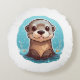 Cartoon otter illustration round cushion