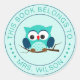 THIS BOOK BELONGS TO custom name sticker for librarians, school teacher, kids etc. Handy for home, school, work, library. Cartoon blue teal owl with modern circular text around a light teal classic sticker