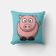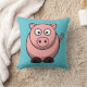 This cute looking cartoon pig looks great on a bright aqua background. This is a fun designed throw pillow that would look good not just in a child's room or family rec room, but also in a home office or just about any room in the home that you wanted to inject a little fun into.