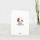 Adorable thank you card. Cute cartoon white puppy dog with brown patches on his face ,ears and tail. He is sitting on green grass and hugging a pink love heart in his tiny front paws.