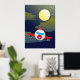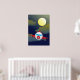 Decorate a nursery or playroom with this whimsical cartoon airplane poster featuring a cute red jet soaring through a star filled night sky. The vibrant illustration of a full yellow moon and fluffy clouds creates a magical atmosphere perfect for kids who love aviation and travel. This high quality print adds a touch of adventure to any childs bedroom wall and makes a wonderful gift for young pilots in training.