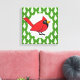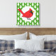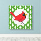 Cartoon Red Cardinal on Green White Pines Pattern Canvas Print