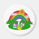 Cartoon rural scene with rainbow and country house magnet