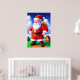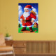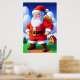 A cartoon of Santa Claus standing in front of a house, looking at you and know if you have been good or bad is year. He is wearing a red suit, hat, and boots, and has a long white beard. Other name for Santa Claus, st. Nicholas, Kris Kringle, Father Christmas, Saint Nicholas. This is a AI generated art.