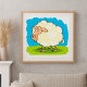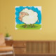 A funny white Woolley cartoon looking sheep. This design looks really effective on these Poster