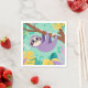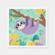 Cartoon sloth hanging upside-down from a branch napkin