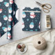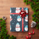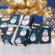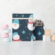 Cartoon Snowmen Dark Blue White Pattern Present Wrapping Paper