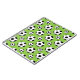 A classic black and white cartoon soccer ball pattern in green background.