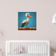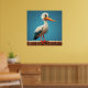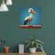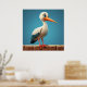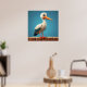 Cartoon Stork with Bright Eyes on Wooden Fence Poster