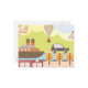 Illustrated scene of various forms of transportation...cars, trains, boats...even a hot air balloon