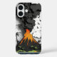 Unleash a dramatic scene of nature's fury with this intensely stylized phone case. The artwork uses a bold, layered, and cartoon-like aesthetic to depict a majestic volcanic eruption on a tropical island.