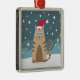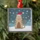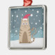 Cartoon xmas cat wearing santa hat in snow metal tree decoration