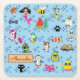 Cartoons sparkles cute blue kids cartoons name square paper coaster