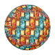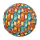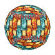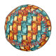 Image of rectangles that overlap each other and with a spacing, may resemble plates of golden or rusted metal that was 'beaten' and this caused them several small dents or notches.