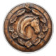 A wooden carving of a gorgeous horse with long flowing mane, rope and floral accents .