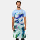 Drawing of dunes with some carved or sculpted effect and with green and blue to some lilac stains gradually breaking down to white, thus reminding a matte metallic piece.