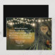 Carved Grandfather Oak Tree Wedding Invitations - features string lights over a rustic background. Change the demo carved initials to your own.