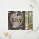 Rustic outdoor wedding rsvp postcards with a romantic woodland setting, string twinkle lights, an old rustic tree with a carved heart and your response details.