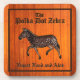This is a digital rendering of the sign hanging outside the world famous and entirely mythical Polka Dot Zebra pub in England. The sign, done in traditional style, features our polka-dotted, brown zebra "carved" or "engraved" o a bare woood background image. Text reading, The Polka Dot Zebra" in Old English font appears at the top. At bottom there is customisable text, in the same font, reading, "Finest Foods and Ales."
