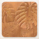 Carved Wood Foliage Faux Print Square Paper Coaster