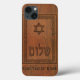 Features a computer-generated "old wood carving" of a Magen David (Star of David), text reading "Shalom" and a floral border. Add your own text.