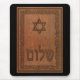 Features a computer-generated "old wood carving" of a Magen David (Star of David), text reading "Shalom" and a floral border.