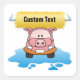 A happy, pig shaped, cartoon car washing with roller brush and water splash.