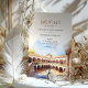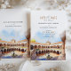 Announce your upcoming wedding with this "Save the Date" card, featuring a stunning watercolor illustration of Casa de Pilatos in Seville, Spain. The design captures the essence of Spanish elegance with an intricate courtyard view, framed by sunlit arches and classic Andalusian architecture in soft shades of terracotta, ivory, and sky blue. Ideal for a romantic destination wedding in Seville, this card reflects the charm and sophistication of southern Spain. Perfect for setting the tone for a celebration steeped in history and beauty.
