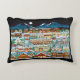 The cushion is small to medium sized. It can be washed. It is well constructed. The material used is pleasant and feels decent quality. It has a very slight plush feel which is good. It is well labelled and its care clearly stated. Theres nothing not to like about it. All in all a good item. The deduction of one star overall is due to long delays in delivery to the UK. It's not clear if this was due to Zazzle or somewhere else in the chain as I did not receive status updates of dispatch or progress. I cannot comment anymore on that other than to say that was our experience but it may not be the same for you. The printing was surprisingly close to what we were expecting. Its an art piece and on material so its hard to assess the precision of printing but it seems close to the original. The soft lines are reproductions of the original. The colour is a fair reflection of the painting. This was printed in the US and it looks like US quality. No issues.