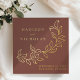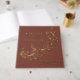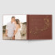 This Elegant Cascading Brown and Gold Foil guest book adds a stylish, personalised touch to your wedding ceremony. The design features your names, wedding date, and location in gold foil lettering divided by a vine of sketched leaves with a brown background. Add custom text to the spine such as your names, wedding date, etc. The back of the gold foil botanical guest book displays your square engagement photo.