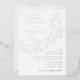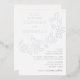 Botanical wedding invitations featuring your names and wedding details in silver foil lettering divided by a vine of sketched leaves with a white background. The elegant silver foil wedding invitations coordinate with our Cascading Leaves wedding collection.