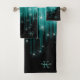 Teal blue lights, like the rainfall of glass on a chandelier, cascade down the face of this striking design that also features your monogram and name on the front corner. This glamourous towel set design against a black background is also available in a variety of other colours to suit your needs. Search ID789 to see other colour options and products with this design.