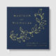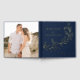 This Elegant Cascading Navy and Gold Foil guest book adds a stylish, personalised touch to your wedding ceremony. The design features your names, wedding date, and location in gold foil lettering divided by a vine of sketched leaves with a navy background. Add custom text to the spine such as your names, wedding date, etc. The back of the gold foil botanical guest book displays your square engagement photo.